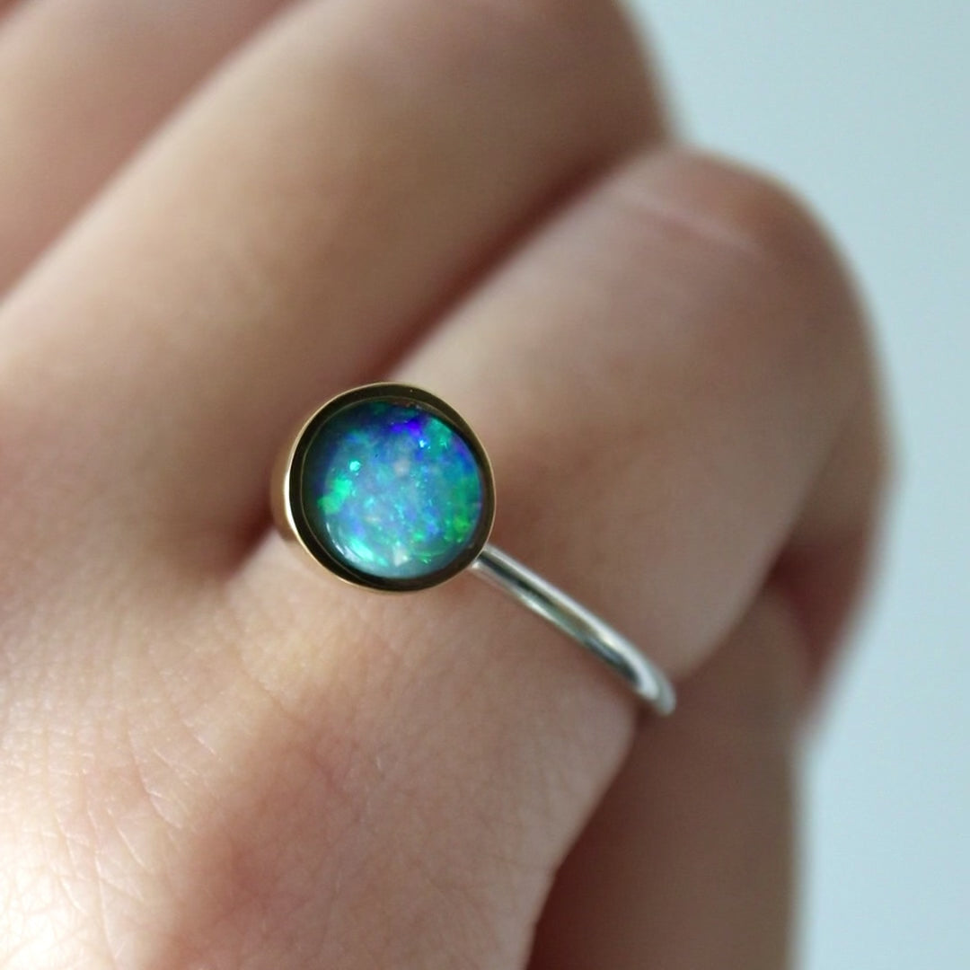 10月の誕生石「オパール」は、神秘的な遊色が最大の魅力。CHIKAKO YAJIMAならではの独自の石留めで、その美しさを一層引き立てたリングをご用意しました。