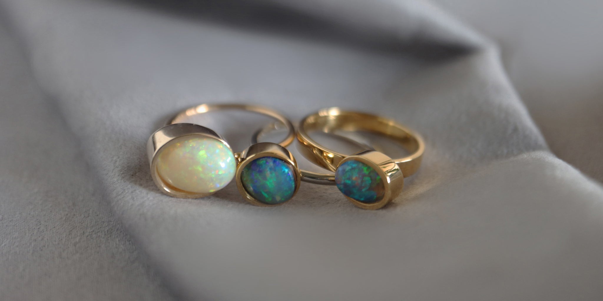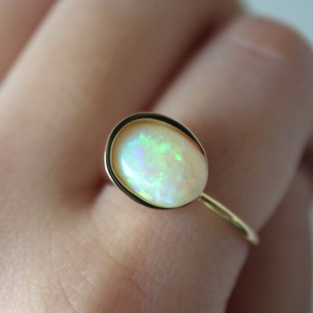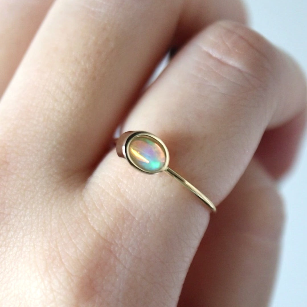 10月の誕生石「オパール」は、神秘的な遊色が最大の魅力。CHIKAKO YAJIMAならではの独自の石留めで、その美しさを一層引き立てたリングをご用意しました。