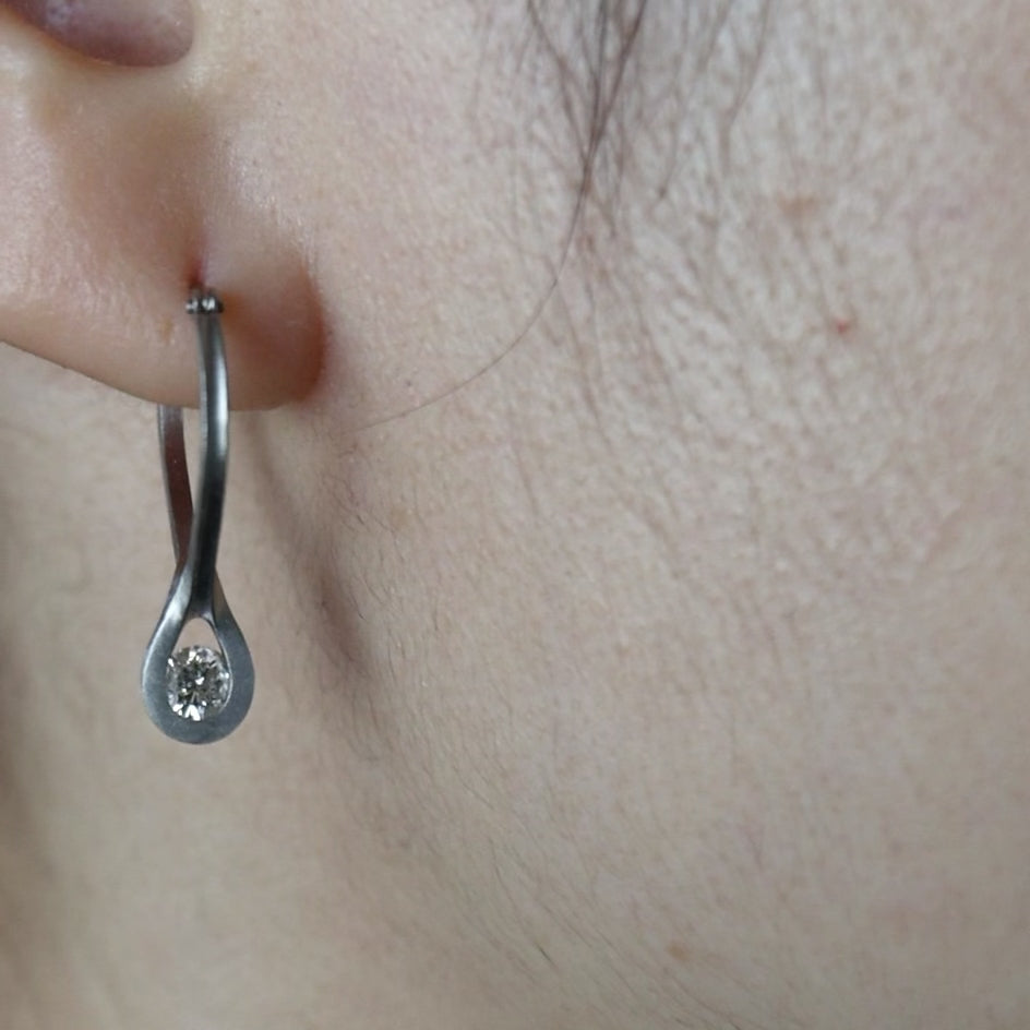 上質な地金にダイヤモンドを添えて、凛とした佇まいのピアスに仕立てました。無駄を削ぎ落とした造形の美しさが、ピアスの魅力を際立たせます。