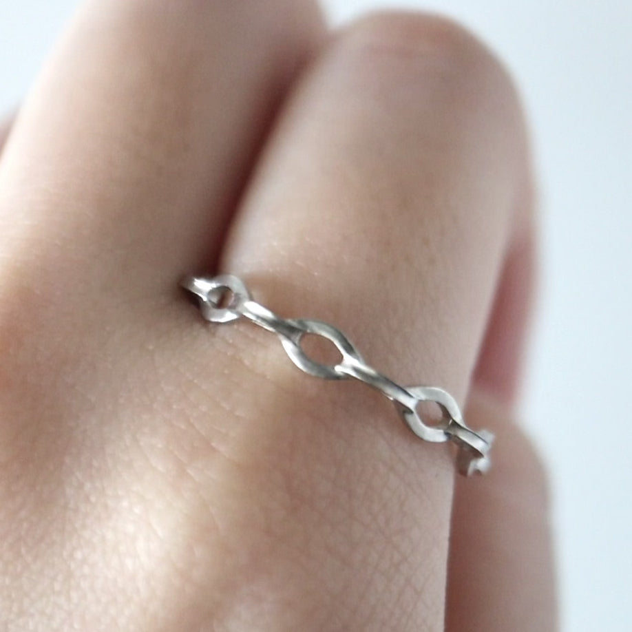 本来、輪がひとつひとつねじれながら連なるデザインですが、サイズ調整の都合により一箇所のみねじれずに輪が続くかたちとなっております(画像をご参照ください)。あらかじめご理解いただけますと幸いです。