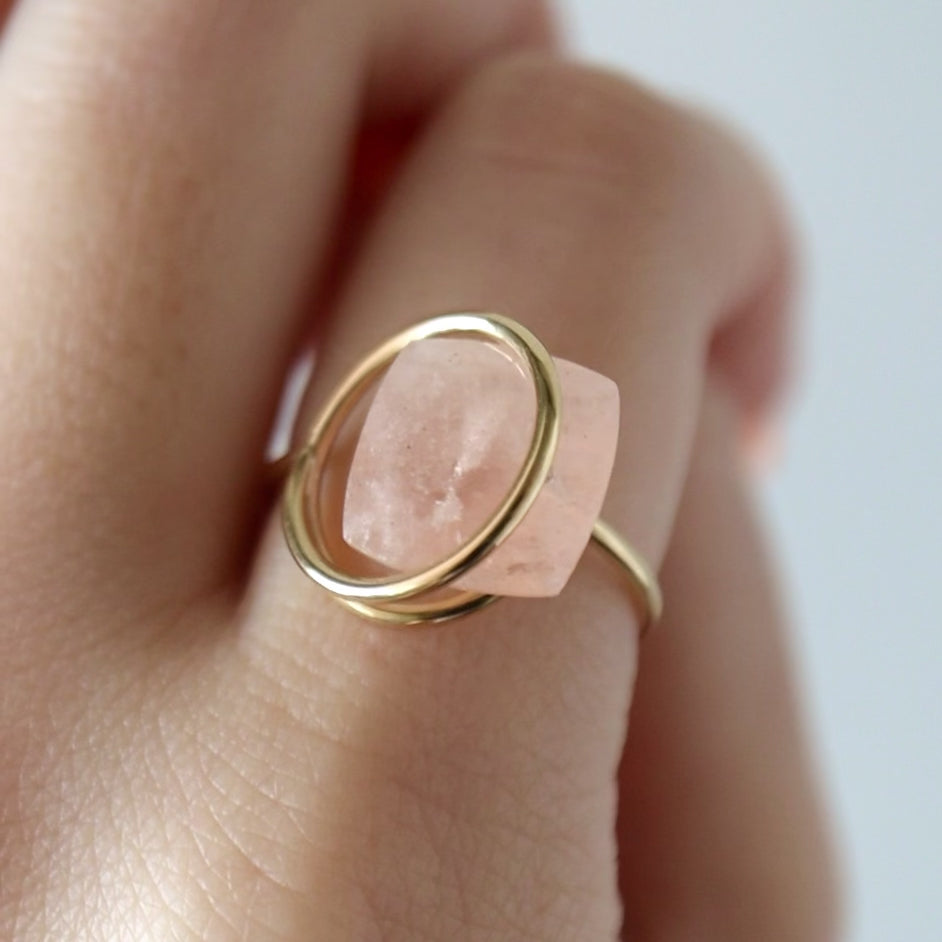 ゴールドの地金が程よいアクセントとなり、甘さの中に凛とした雰囲気をプラス。肌なじみもよく、手元にさりげない彩りを添えてくれるので、リング初心者の方にもおすすめの一品です。