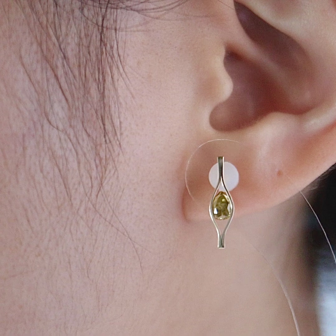 天然石が隙間から顔を覗かせるユニークなスタイルで、ミニマルながらモードな印象のピアスです。