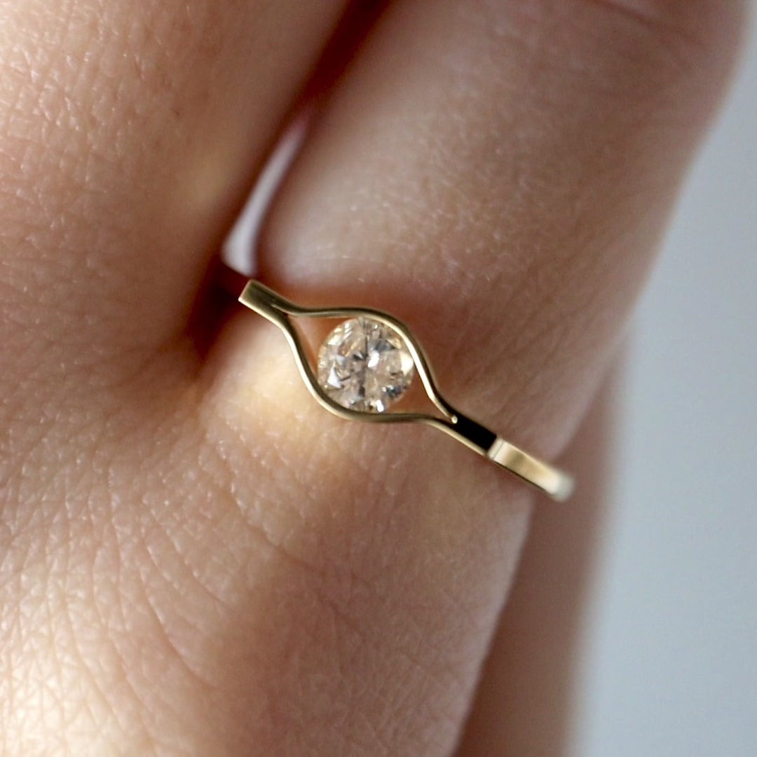 天然石が隙間から顔を覗かせるユニークなスタイルで、ミニマルながらモードな印象のリングです。