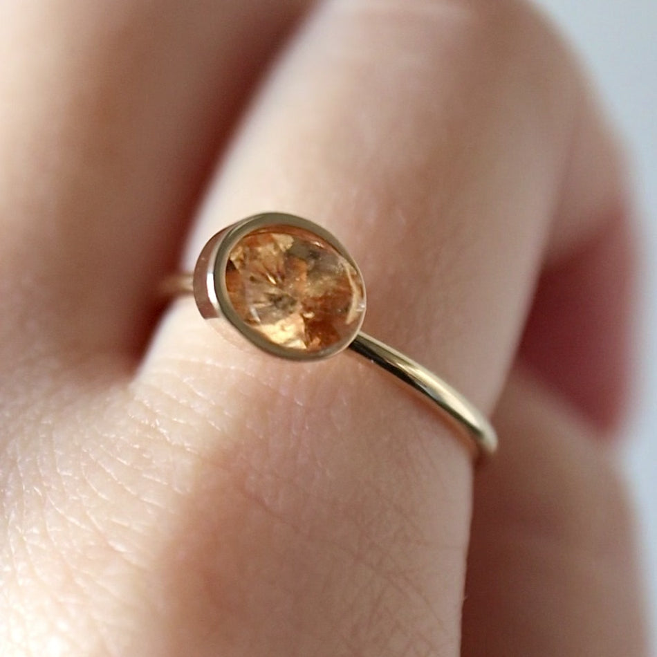 今までにない、オリジナルの石留め方法で作られたProtrude Ring。石が飛び出ているようなデザインが特徴です。また、特別な石留め方法で光を取り込むため、天然石が綺麗に見えます。