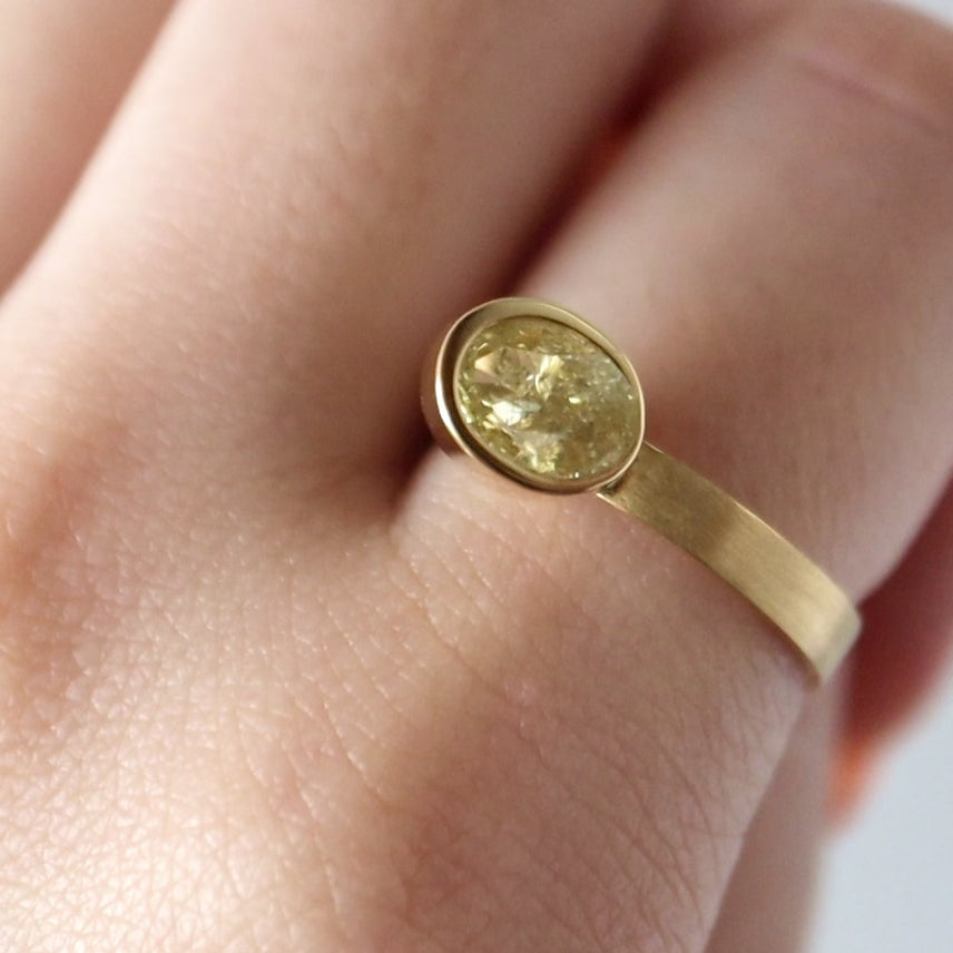 煌めきが強く、まるで光を内側に宿したようなイエローダイヤモンド。