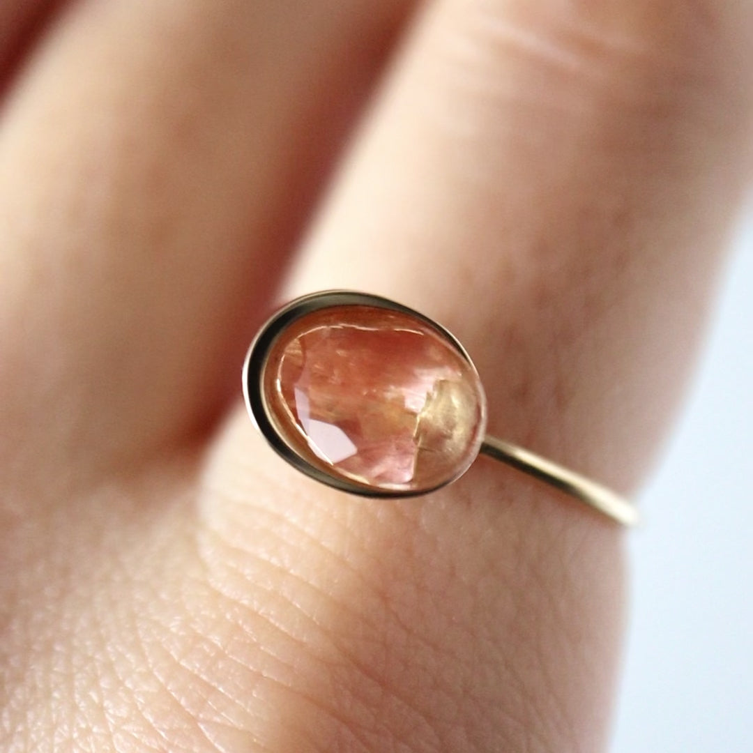 輪郭から、そっとこぼれる。光を纏い、静かに浮かびあがるひと粒の存在。「Protrude Ring」は、日常に寄り添うアートピースのような天然石リングです。